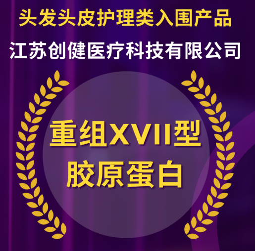 江苏创健蓝颜 科技有限公司的“重组XVII型胶原”在入围的28家企业(蓝颜)中脱颖而出,荣获2022PCHi芳典奖头发和头皮护理类原料创新奖!
